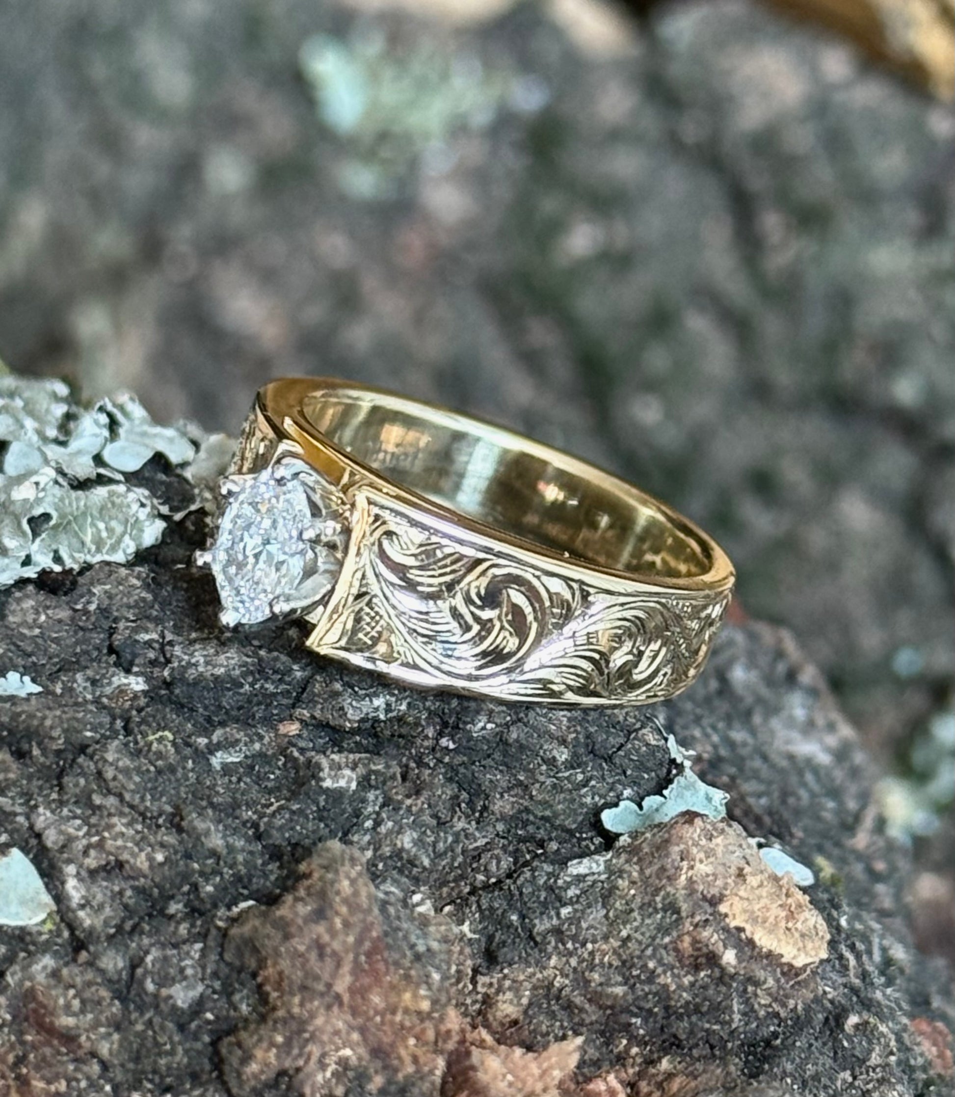 Ring tapers from an approx. 7mm width to 3.5mm on the bottom.
