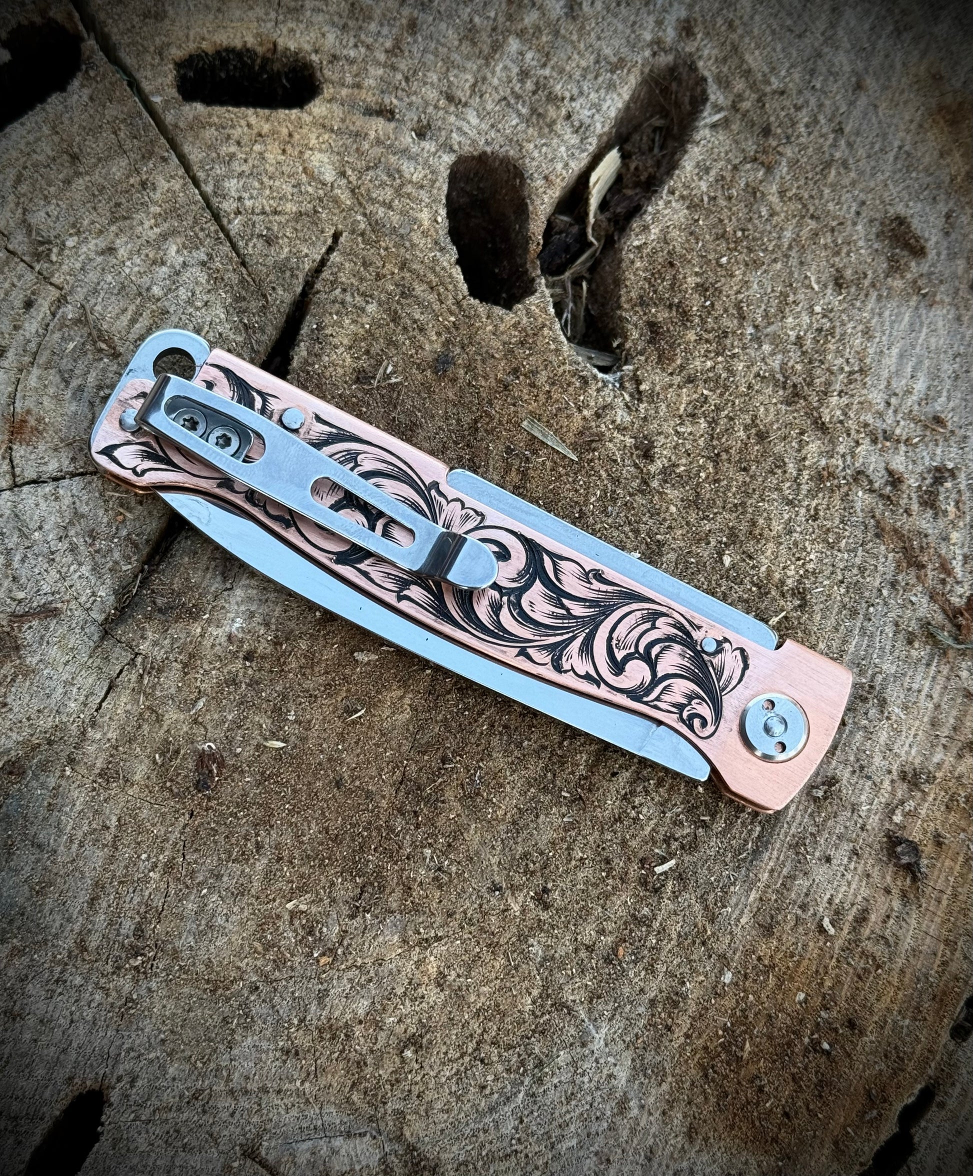 Hand engraved Boker Folding Knife with Pocket Clip