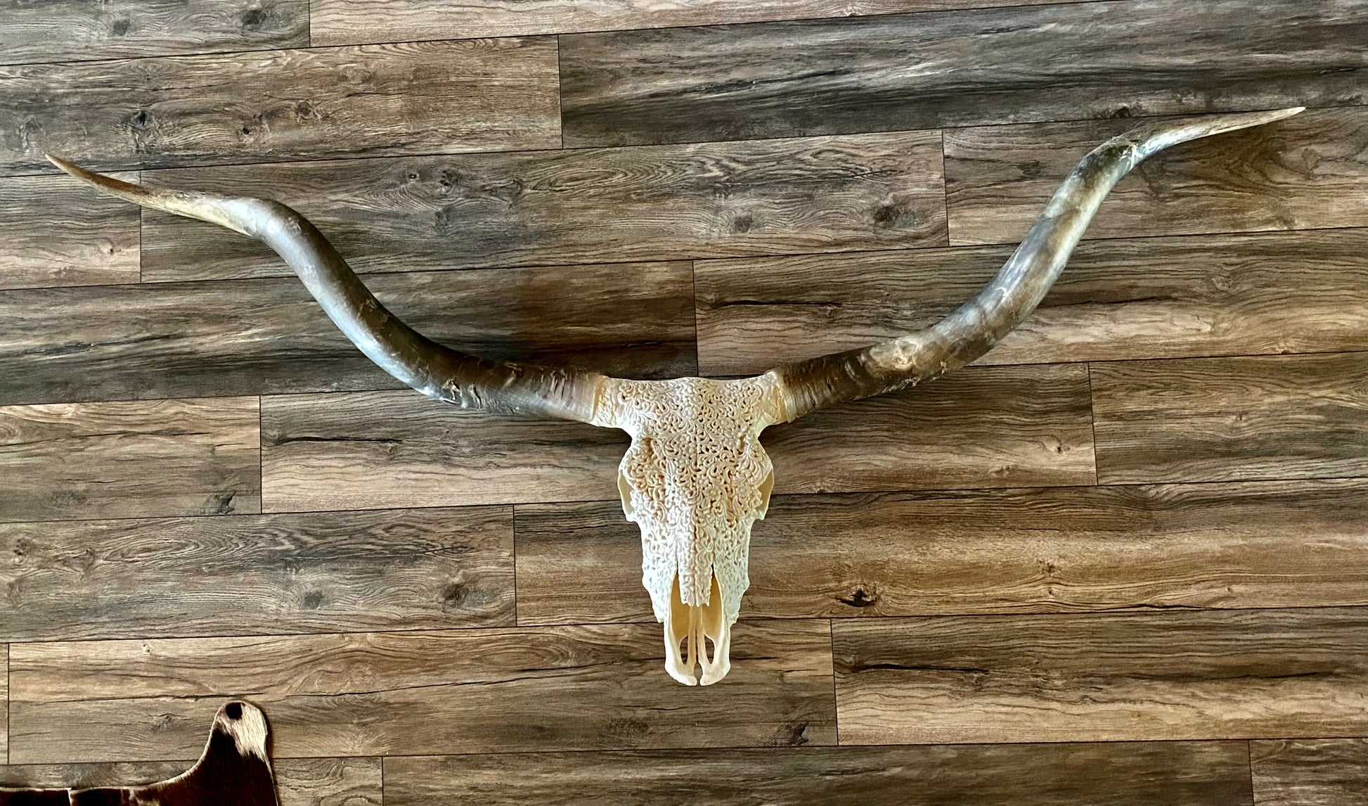 with lots of horn; measuring 75" Tip To Tip (straight across)
