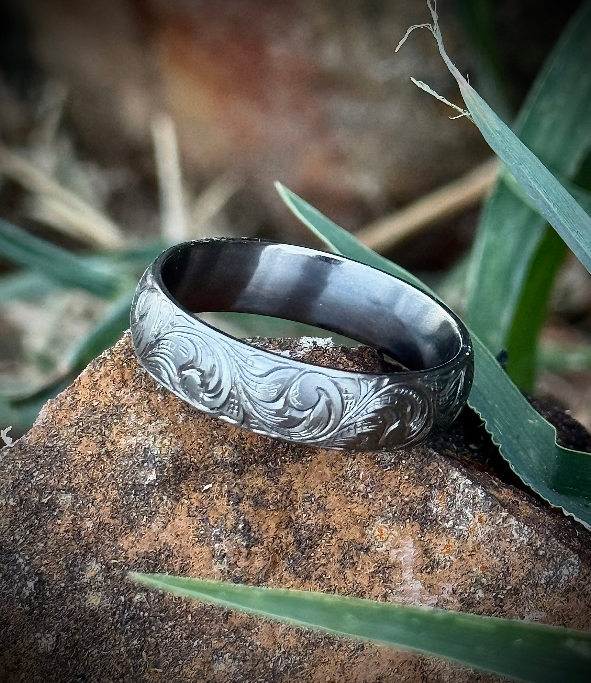 Hand engraved Titanium Band Sz 12.