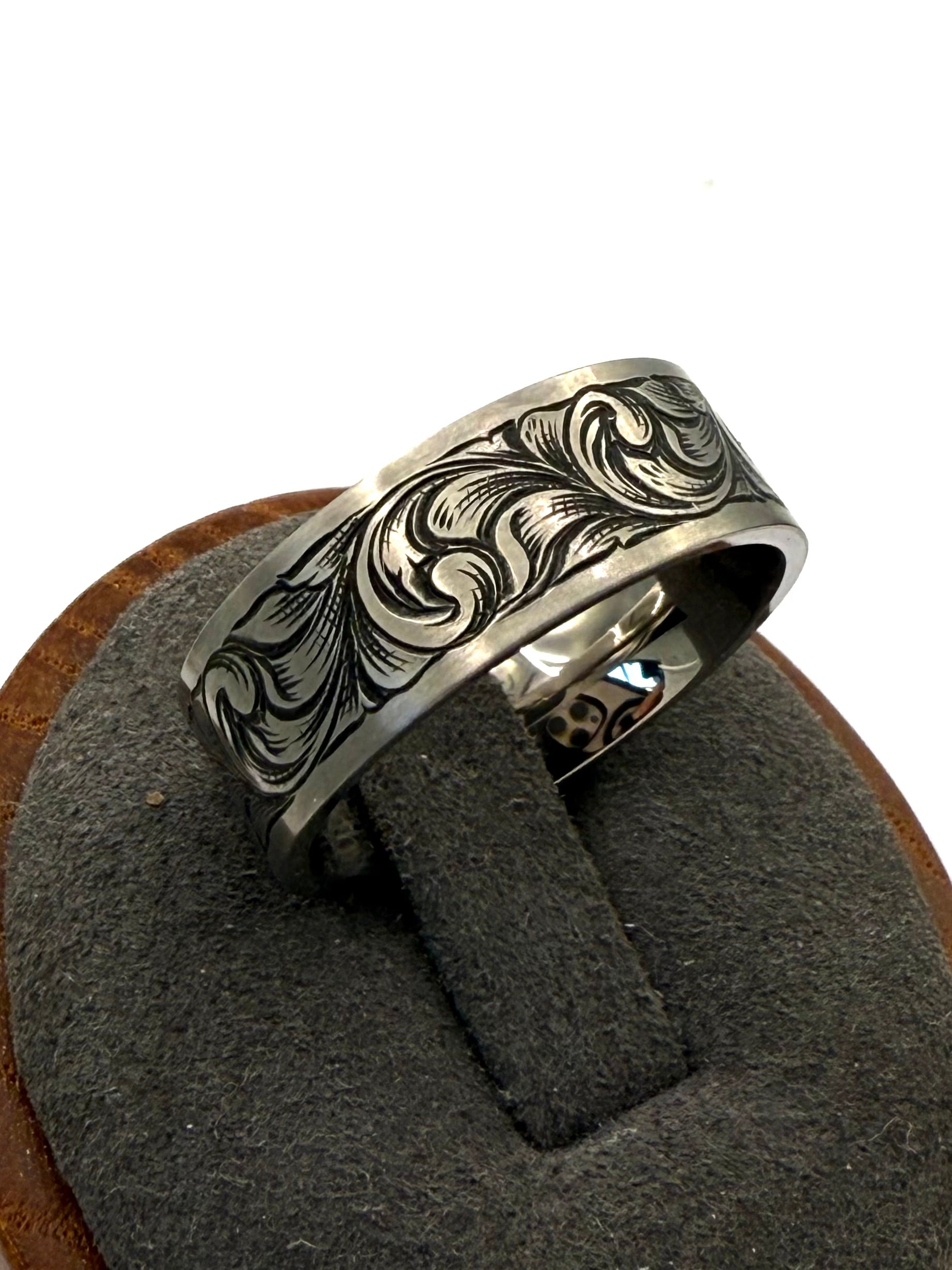 Titanium Rings are made out of harder material than Sterling and engravings will last longer. However they cannot be resized.
