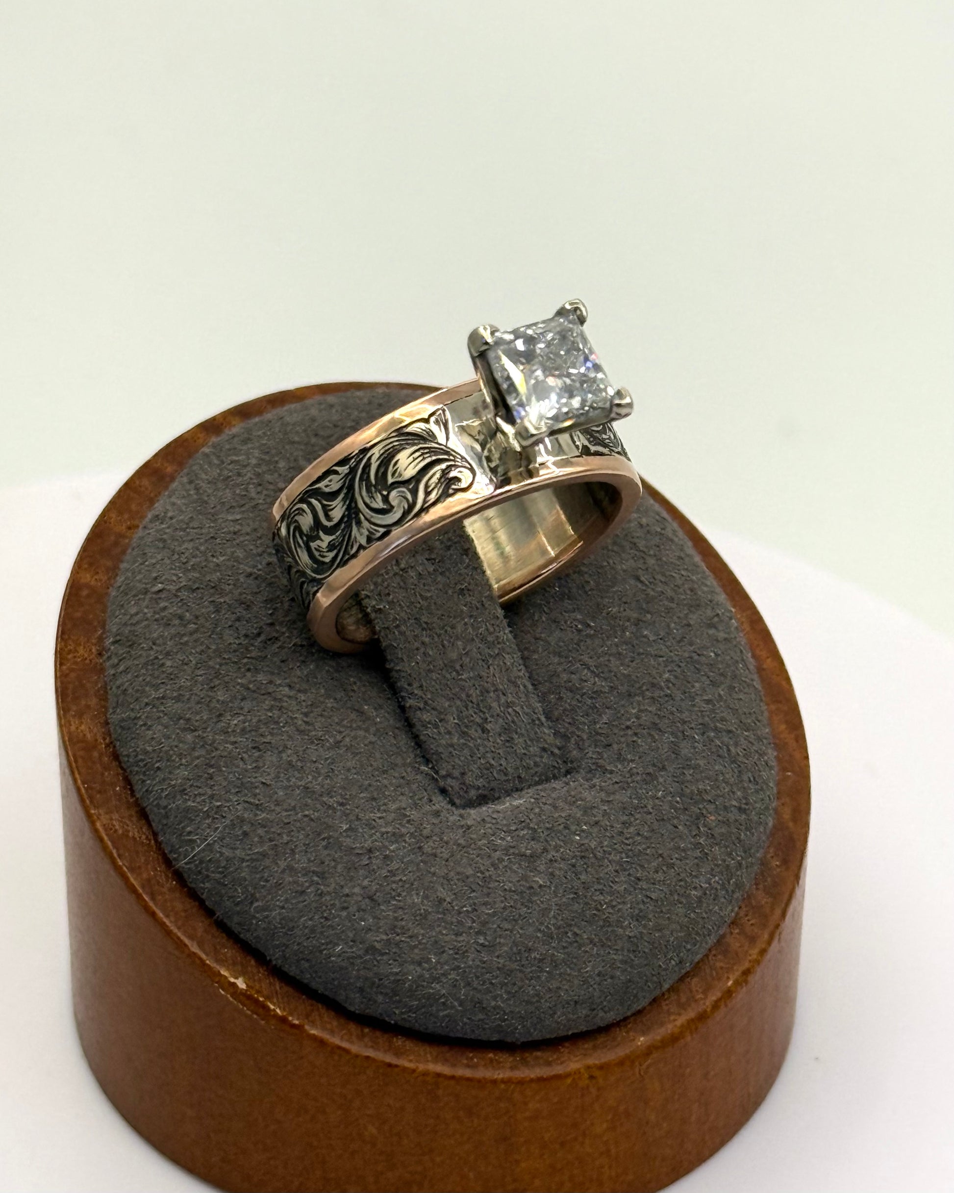 This ring is antiqued with an oil based paint and heat cured. The background color is durable but will wear over time and harsh chemicals (nail polish remover, acetone, chlorine treated swimming pools, huttubs, paint thinner, etc) will remove the black color even quicker. The antiquing can be re-done easily if necessary.