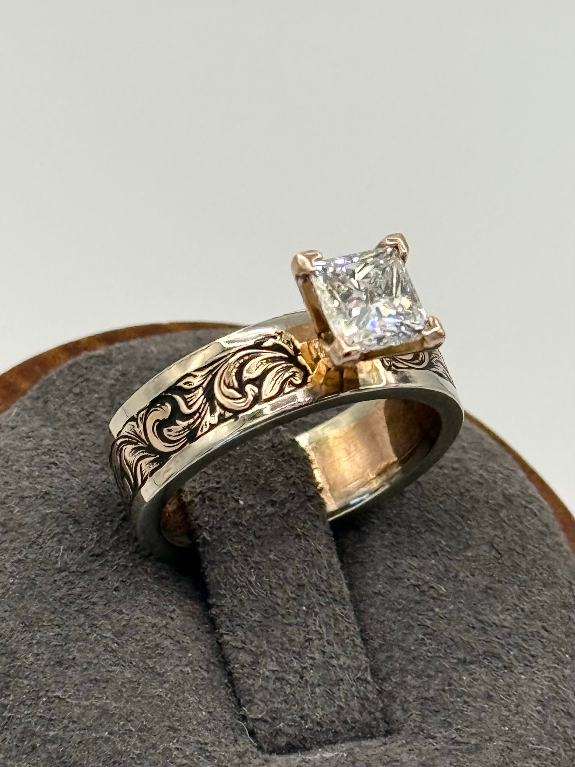 This Ring has been antiqued with oil based paint. The paint may wear over time. Chemicals such as nail polish remover, acetone, chlorine treated swimming pools, hottubs and large amounts of hand sanitizer will remove the black even quicker. The background antique can be re-done if necessary.