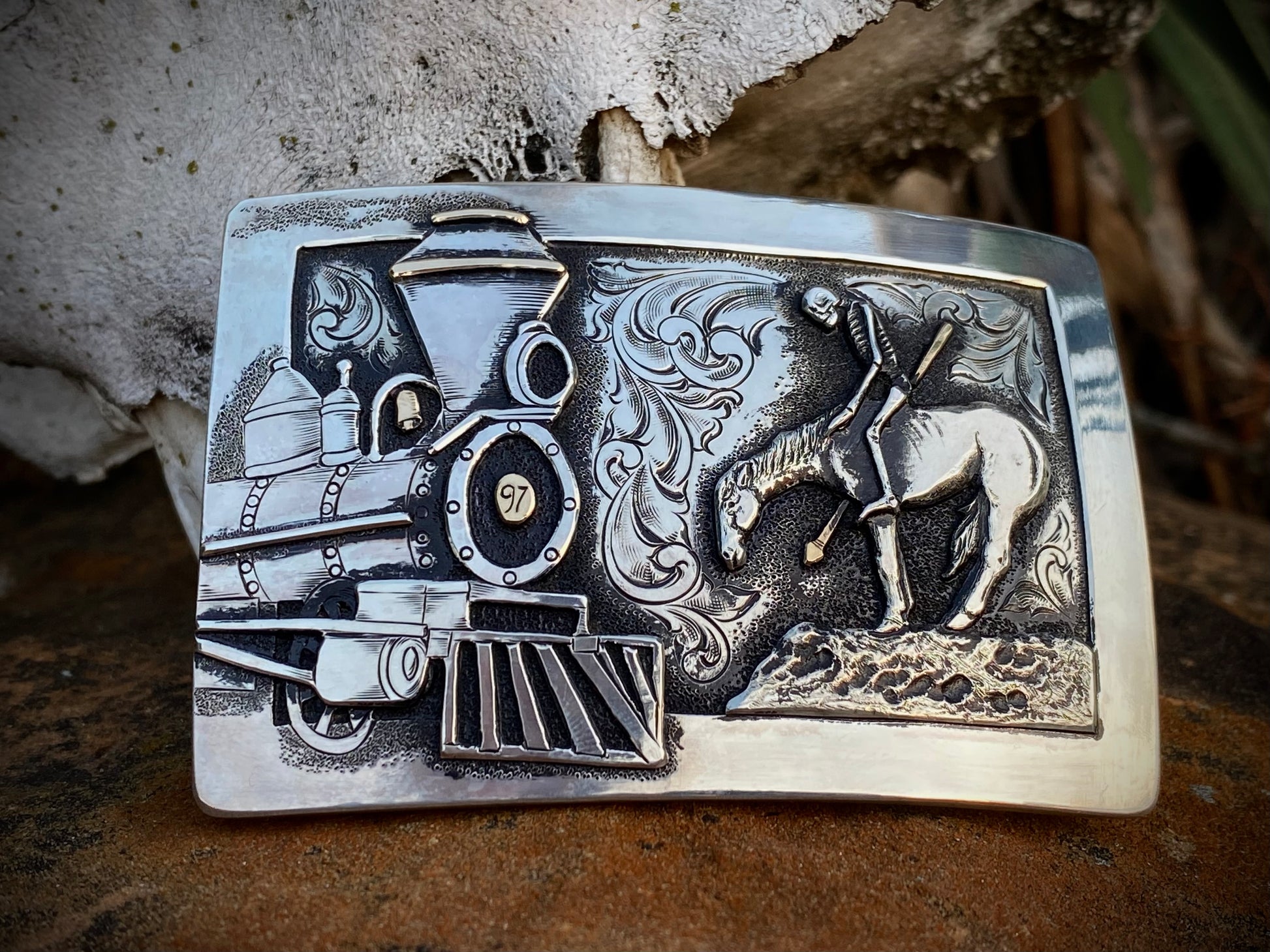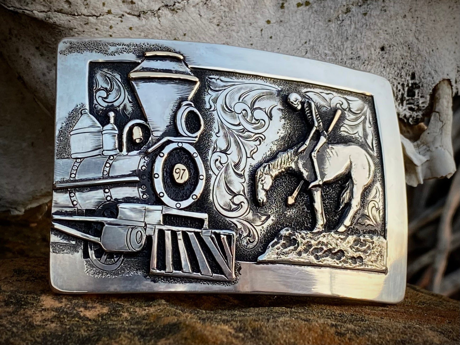 Belt Buckle for 1.5" Belts in solid 925 Sterling Silver; overall measurements are 3 1/2 x 2 3/8";